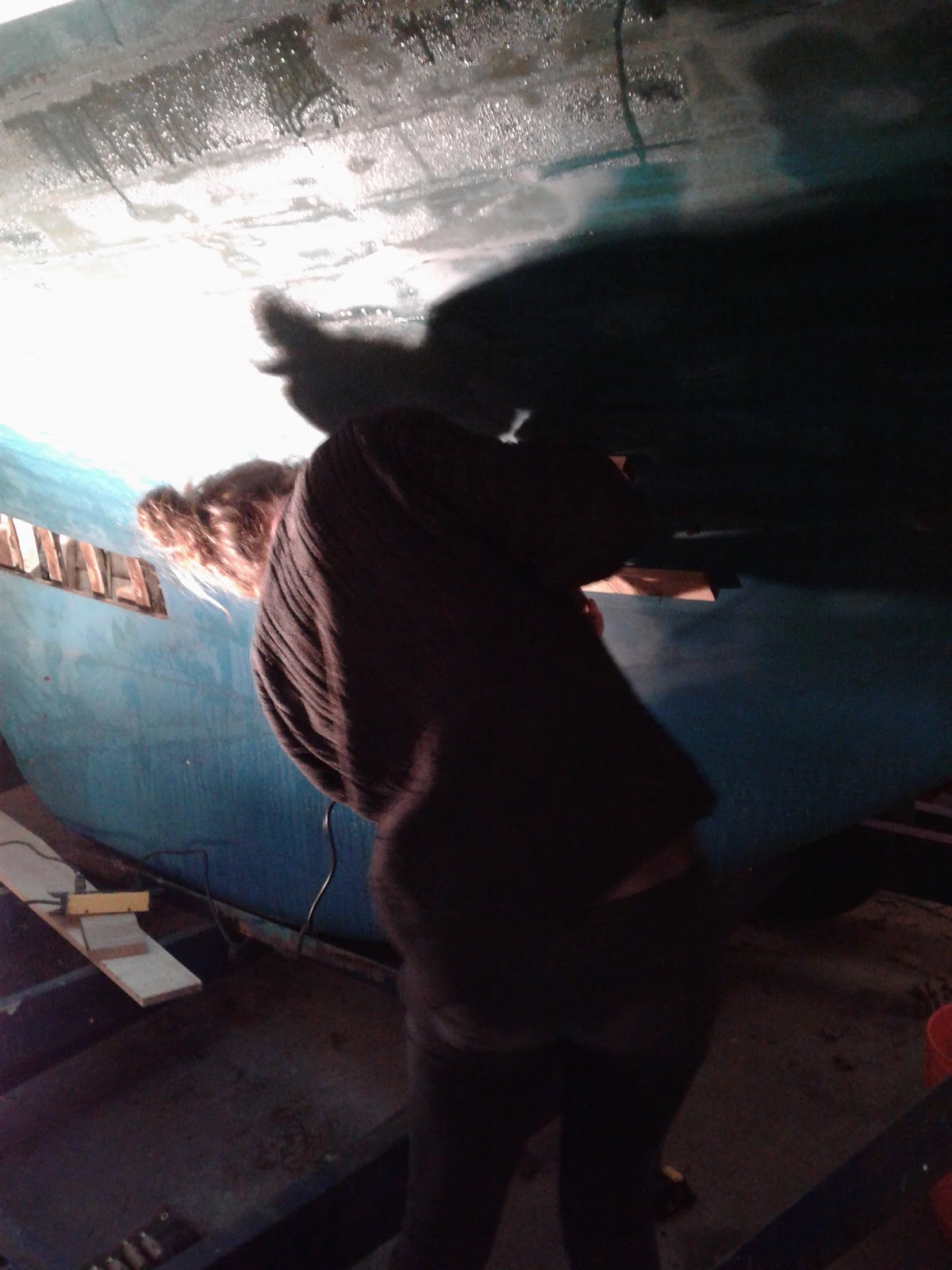 We had to clean out the area where the new plank would go. Earlier I had grinded off old bolts and screw ends from ribs that we screwed from the inside as well as out. I don't think fastening frames that way that is common practice...